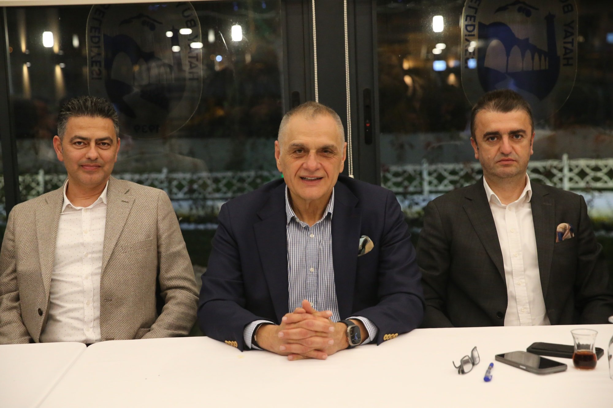 [ad_1] Süper Lig temsilcisi Atakaş Hatayspor, basın mensuplarıyla iftar yemeğinde buluştu. Etkinlikte, Hatayspor Başkanı Hikmet Çinçin de açıklamalarda bulundu. Kültür ve Sanat Çarşısı’ndaki iftar yemeğine kulüp başkanı Hikmet Çinçin, teknik direktör Murat Şahin, takım kaptanları ve basın mensupları katıldı. Çinçin, basın mensuplarına yaptığı açıklamada, takım olarak üst sıralara yükselmeyi hedeflediklerini belirtti. “Bir ivme yakaladık,” diyen […]